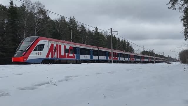 Электропоезда ЭГ2Тв-008 и ЭГ2Тв-024 "Иволга", перегон Павшино - Нахабино