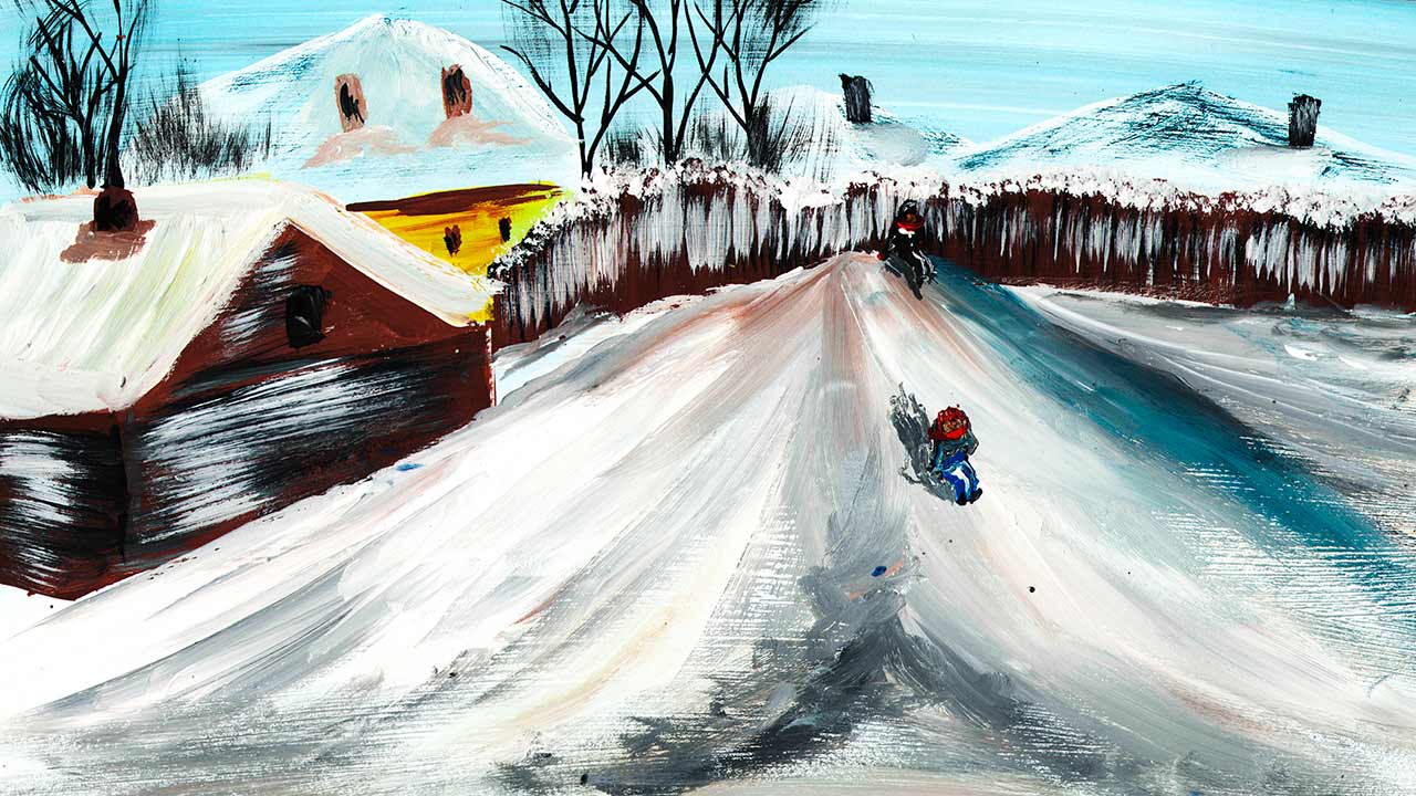 Как нарисовать деревенский пейзаж. Рисуем горку. Дети катаются с горки. Правополушарное рисование