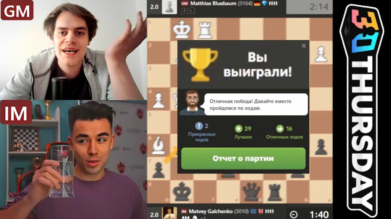 Сумасшедшая БИТВА! Маттиас Блюбаум - Матвей Гальченко 12.03.2026 ММ Матвей Гальченко (канал) - https://www.youtube.com/channel/UCvJVKjyObf20wQ6XMlwkzHQ МГ Маттиас Блюбаум (канал) - https://www.twitch.tv/keinsehrstarkerspieler