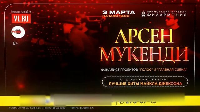 Арсен Мукенди во Владивостоке 3 марта в Филармонии