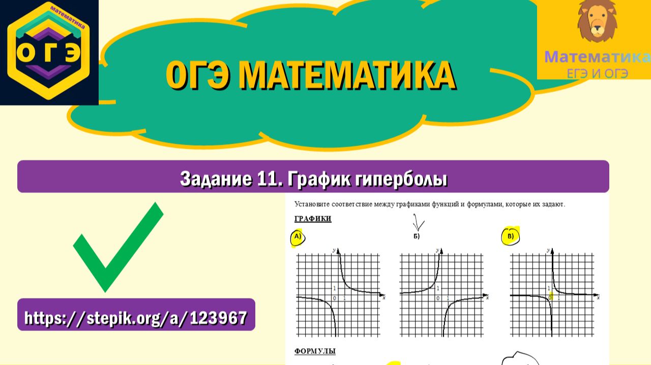 Продолжение на степике: https://stepik.org/a/123967. Вся теория и разбор задач, которые точно встретятся на ОГЭ по математике! ТГ-канал: t.me/ege_oge_maths. В видео разбираем Задание 11, решаем типовую задачу: Установите соответствие между графиками функций и формулами, которые их задают.