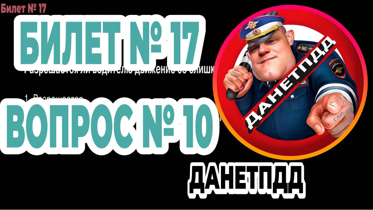 Билет № 17. Вопрос № 10. Разрешается ли водителю движение со слишком малой скоростью? Решаем вопрос № 10 ПДД онлайн экзаменационного билета ГАИ № 17. ___________________________________________ 🔥 Вы можете поддержать канал по ссылке: https://clck.ru/3FeMWH ___________________________________________ ✅ ДАНЕТПДД в социальных сетях: YouTube: https://youtube.com/@danetpdd Rutube: https://rutube.ru/channel/51400104/ VK Видео: https://vkvideo.ru/@danetpdd ВКонтакте: https://vk.com/danetpdd Телеграм: https://t.me/danetpdd