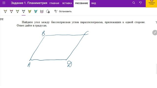ТГ-канал: t.me/ege_oge_maths. Вся теория и практика для ПРОФИЛЬного ЕГЭ: https://stepik.org/a/123457. Много задач для самостоятельного решения с моментальной проверкой результата! Разбираем Задание 1 - геометрия в плоских фигурах профильного уровня. В видео решаем задачи: 1. Диагональ параллелограмма образует с двумя его сторонами углы 26 и 34. Найдите больший угол параллелограмма. 2. В ромбе ABCD угол BCD равен 48. Найдите угол DBA. Ответ дайте в градусах. 3. Найдите угол между биссектрисами углов параллелограмма, прилежащих к одной стороне. Ответ дайте в градусах. 4. Угол между стороной и диагональю ромба равен 54. Найдите острый угол ромба.
