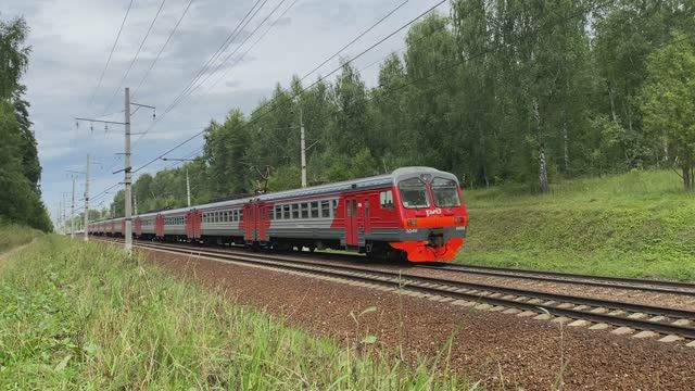 Электропоезд ЭД4М-0096, перегон Пушкино - Софрино, Московская область (август 2021г.)