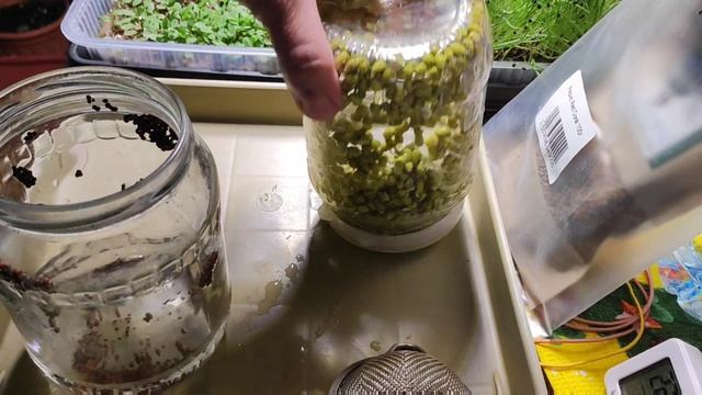Посеяла Редис Рэд Коралл. Увлажнила семена редиса под прижимом. Промыла проростки брокколи и маша.