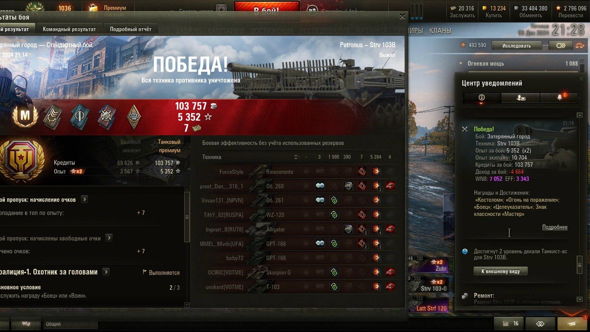 2024.12.06 Мастер на Strv 103B, Затерянный город, 5284 урон, 4 фраг