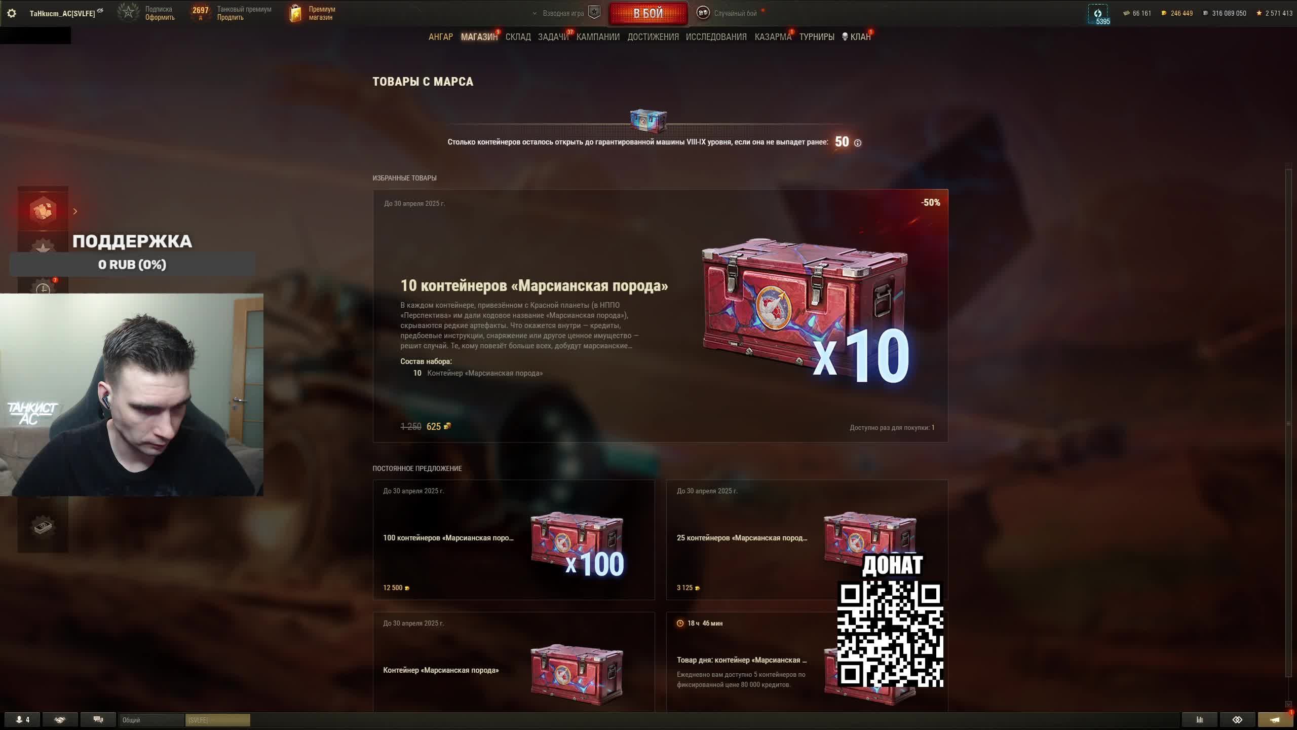 Поддержать стримера http://www.donationalerts.ru/r/tahkucm_ac Сбер без комиссии 2202 2062 2408 9735 напишите в чате, чтобы проверил Telegram https://t.me/TaHkucm_AC Канал VK Play Live https://vkplay.live/tahkucm Канал Бусти https://boosty.to/tahkucm Канал на трово https://trovo.live/TaHkucm_AC Канал Яндекс Дзен https://dzen.ru/id/62355e95d406852937d33526 Группа Вконтакте https://vk.com/tahkucm_ac Оборудование и модернизации на все танки https://docs.google.com/spreadsheets/d/16koQOrtKQKQrAy2Pgfm6GBeG8bA1tJP_7Vm78knwUXA/edit#gid=422106233 Настройки игры в скринах https://dzen.ru/a/YmFvHhJ9yi3rZO5M Моды со скринами установки https://vk.com/topic-136212047_47639792 По поводу рекламы писать в личку https://vk.com/v_xarlamow Всем привет! Меня зовут Виктор, мой ник TaHkucm_AC. На моем канале стрим мира танков каждый день с 8 или 9 по мск. Так же иногда стримлю вечером в произвольное время, чтобы не пропустить подпишитесь на оповещения в телеге или вк (ссылки выше). Играю в танки с декабря 2011 года, а стримить начал в начале 2017 года. Во время стримов общаюсь с чатом, помогаю советами по игре, объясняю тактику. Средняя статистика 65% побед и 4-5к вн8. Фан кланы SLPFR - Командиры marmyn и artlay - из требований только то, чтобы вы часто играли в танки. Укреп 10 уровня. Участвуют в ивентах на ГК, как минимум чтобы собрать пропуск на аукцион. L-DS - Командир DarkSpawn13. Укреп 10 уровня, плюхи по кд SVLFE - Командир Shadowlions. Требуется Team Speak (программа связи) для взводов и клановых покатушек. Участвуют в ивентах на ГК, как минимум чтобы собрать пропуск на аукцион. укреп 10 уровня
