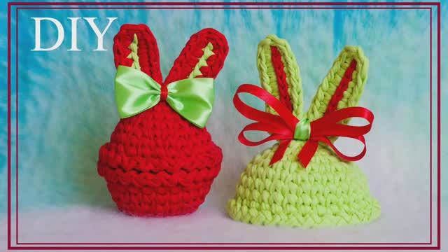 КРЫШКА для КОРЗИНКИ ЗАЙЧИКА из трикотажной пряжи. СИМВОЛ 2023 крючком