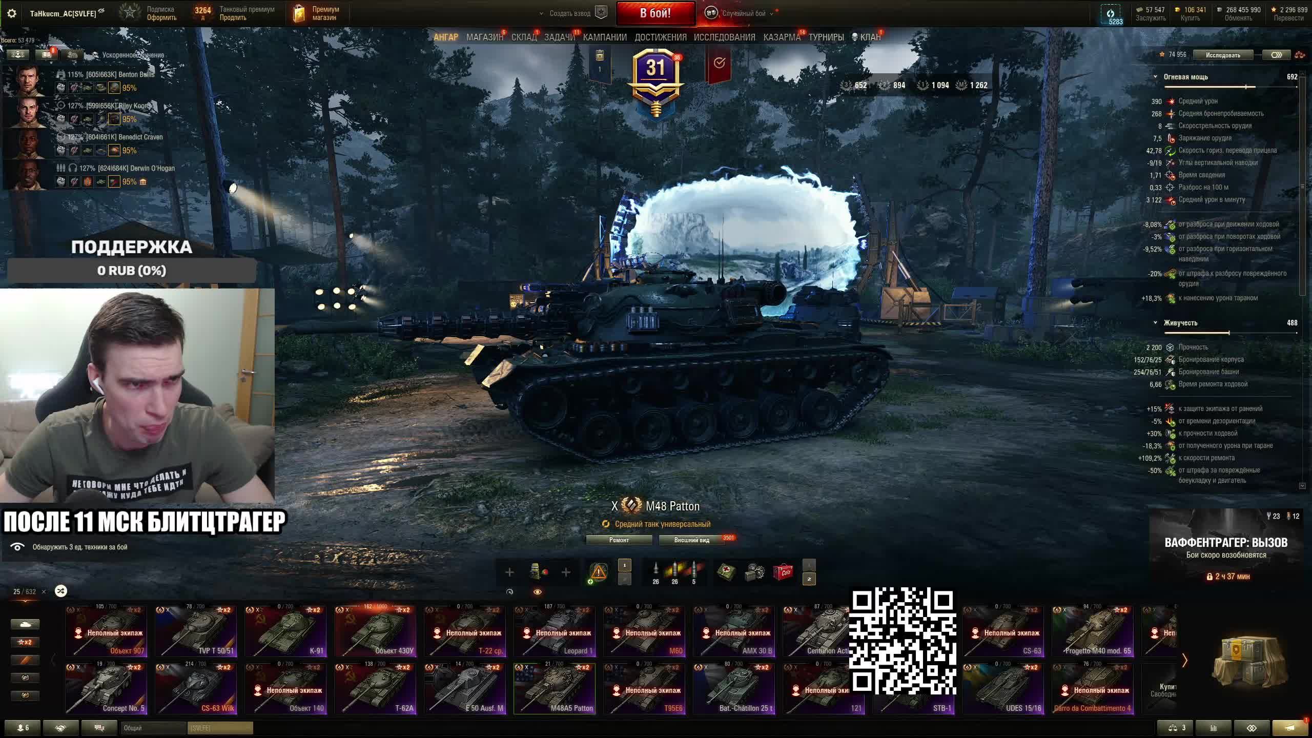 Поддержать стримера http://www.donationalerts.ru/r/tahkucm_ac Сбер без комиссии 2202 2062 2408 9735 напишите в чате, чтобы проверил Telegram https://t.me/TaHkucm_AC Канал Ютуб https://www.youtube.com/c/TaHkucmAC Канал VK Play Live https://vkplay.live/tahkucm Канал Бусти https://boosty.to/tahkucm Канал на трово https://trovo.live/TaHkucm_AC Канал Дзен https://dzen.ru/id/62355e95d406852937d33526 Группа Вконтакте https://vk.com/tahkucm_ac Оборудование и модернизации на все танки https://docs.google.com/spreadsheets/d/16koQOrtKQKQrAy2Pgfm6GBeG8bA1tJP_7Vm78knwUXA/edit#gid=422106233 Настройки игры в скринах https://dzen.ru/a/YmFvHhJ9yi3rZO5M Моды со скринами установки https://vk.com/topic-136212047_47639792 По поводу рекламы писать в личку https://vk.com/v_xarlamow Всем привет! Меня зовут Виктор, мой ник TaHkucm_AC. На моем канале стрим мира танков каждый день с 8 или 9 по мск. Так же иногда стримлю вечером в произвольное время, чтобы не пропустить подпишитесь на оповещения в телеге или вк (ссылки выше). Играю в танки с декабря 2011 года, а стримить начал в начале 2017 года. Во время стримов общаюсь с чатом, помогаю советами по игре, объясняю тактику. Средняя статистика 65% побед и 4-5к вн8. Фан кланы SLPFR - Командиры marmyn и artlay - из требований только то, чтобы вы часто играли в танки. Укреп 10 уровня. Участвуют в ивентах на ГК, как минимум чтобы собрать пропуск на аукцион. L-DS - Командир DarkSpawn13. Укреп 10 уровня, плюхи по кд SVLFE - Командир Shadowlions. Требуется Team Speak (программа связи) для взводов и клановых покатушек. Участвуют в ивентах на ГК, как минимум чтобы собрать пропуск на аукцион. укреп 10 уровня