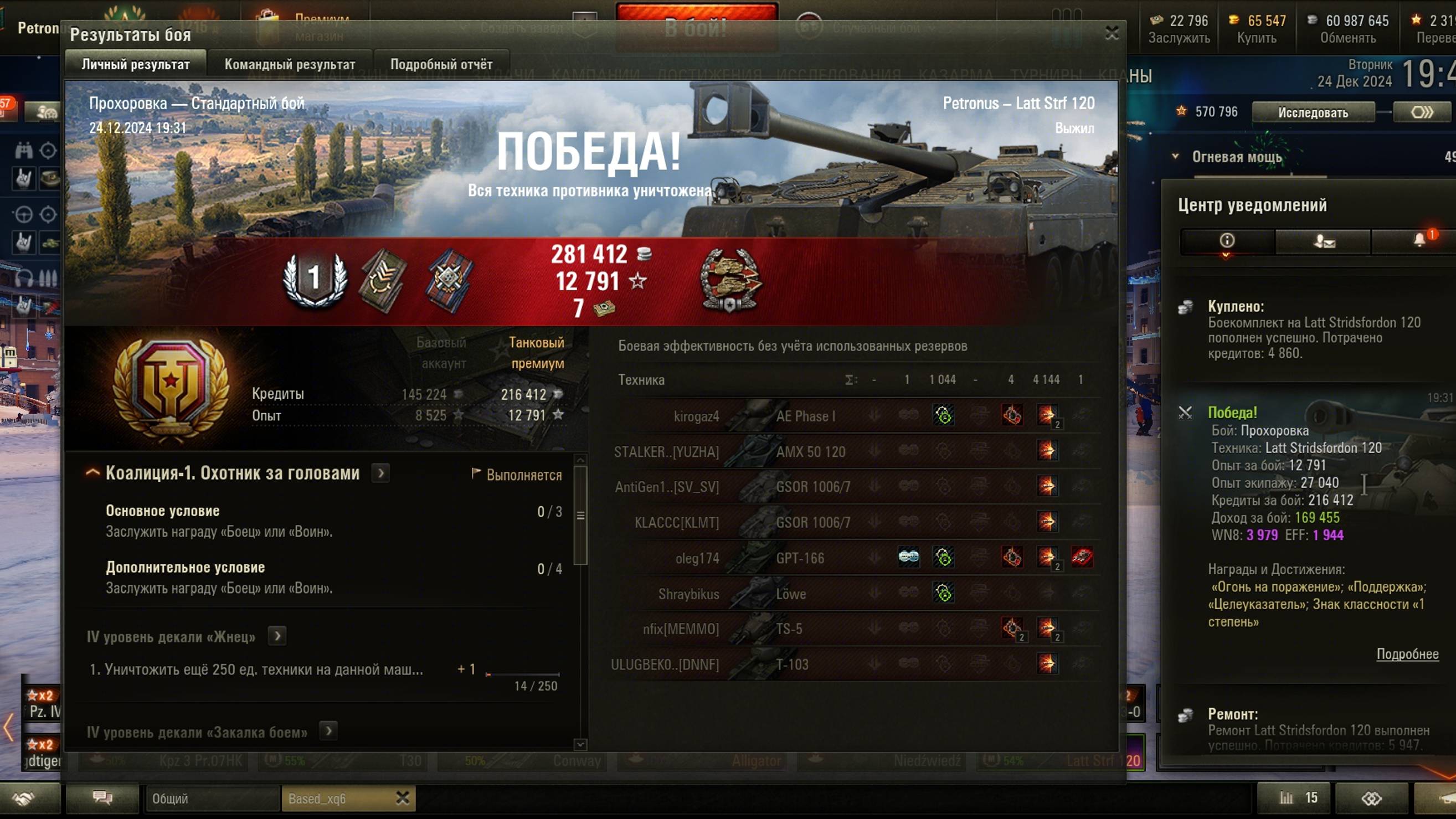 Победа! Бой: Прохоровка, Техника: На передовой с ТТ, Latt Stridsfordon 120, 4144 урон, 1 фраг Опыт за бой: 12791 , Опыт экипажу: 27040, Кредиты за бой: 216412, Доход за бой: 169455, WN8: 3979, EFF: 1944, Награды и Достижения: «Огонь на поражение»; «Поддержка»; «Целеуказатель»; Знак классности «1 степень» --------------------- Здесь мои покатушки по игре "МИР ТАНКОВ", Не судите строго, играю урывками после работы :) Стримы и видео на каналах: https://www.youtube.com/@andreypetrovpetronus/videos https://rutube.ru/channel/23544308 https://vk.com/video/@id1071693 https://trovo.live/anpetr33 https://www.twitch.tv/anpetr33 https://nuum.ru/channel/anpetr33 https://plvideo.ru/channel/@Petronus Всем добра :) --------------------- Поддержать стримера: https://www.donationalerts.com/r/anpetr33 ---------------------