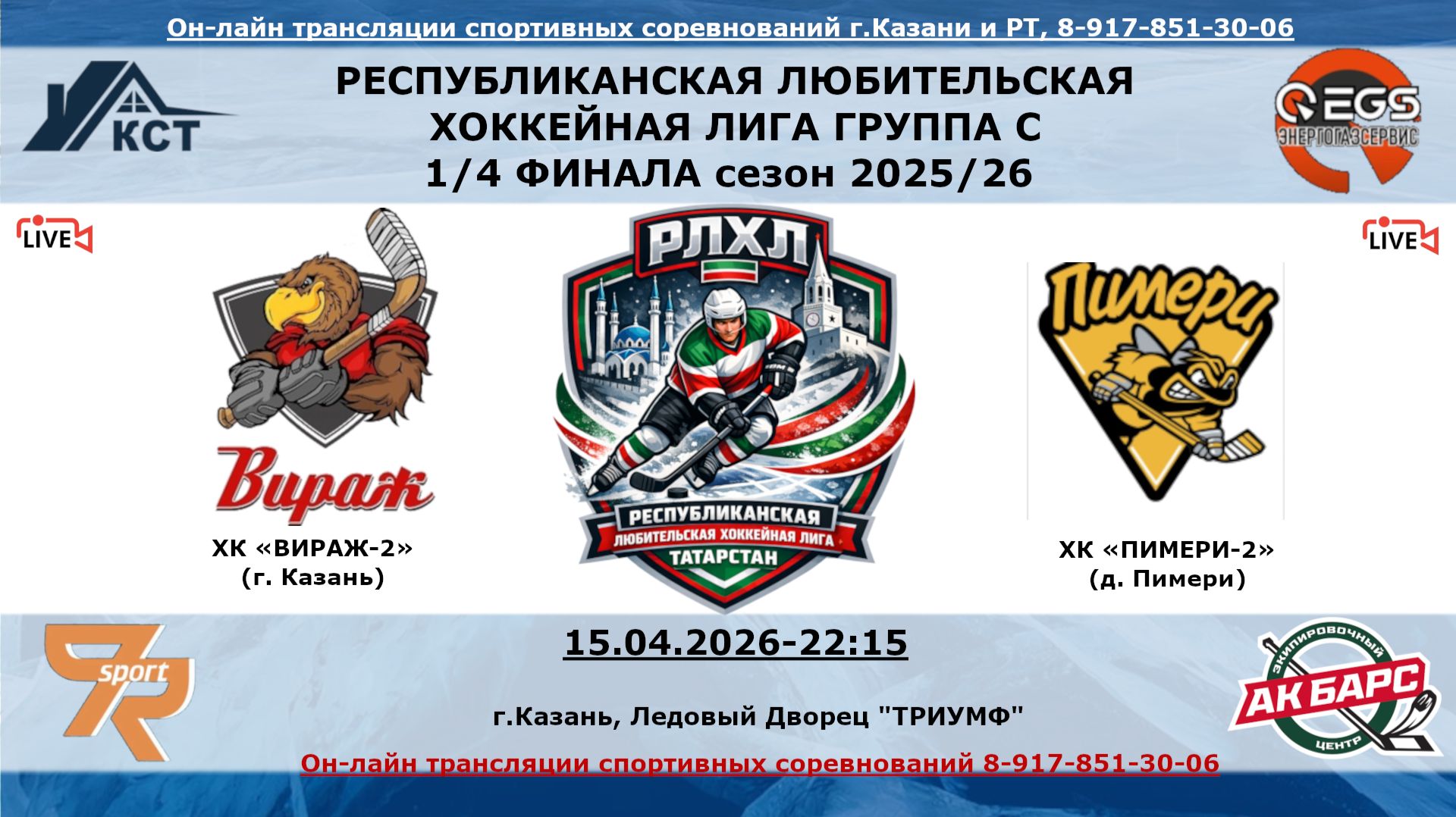 ХК «ВИРАЖ-2» (г. Казань) - ХК «ПИМЕРИ-2» (д. Пимери)
