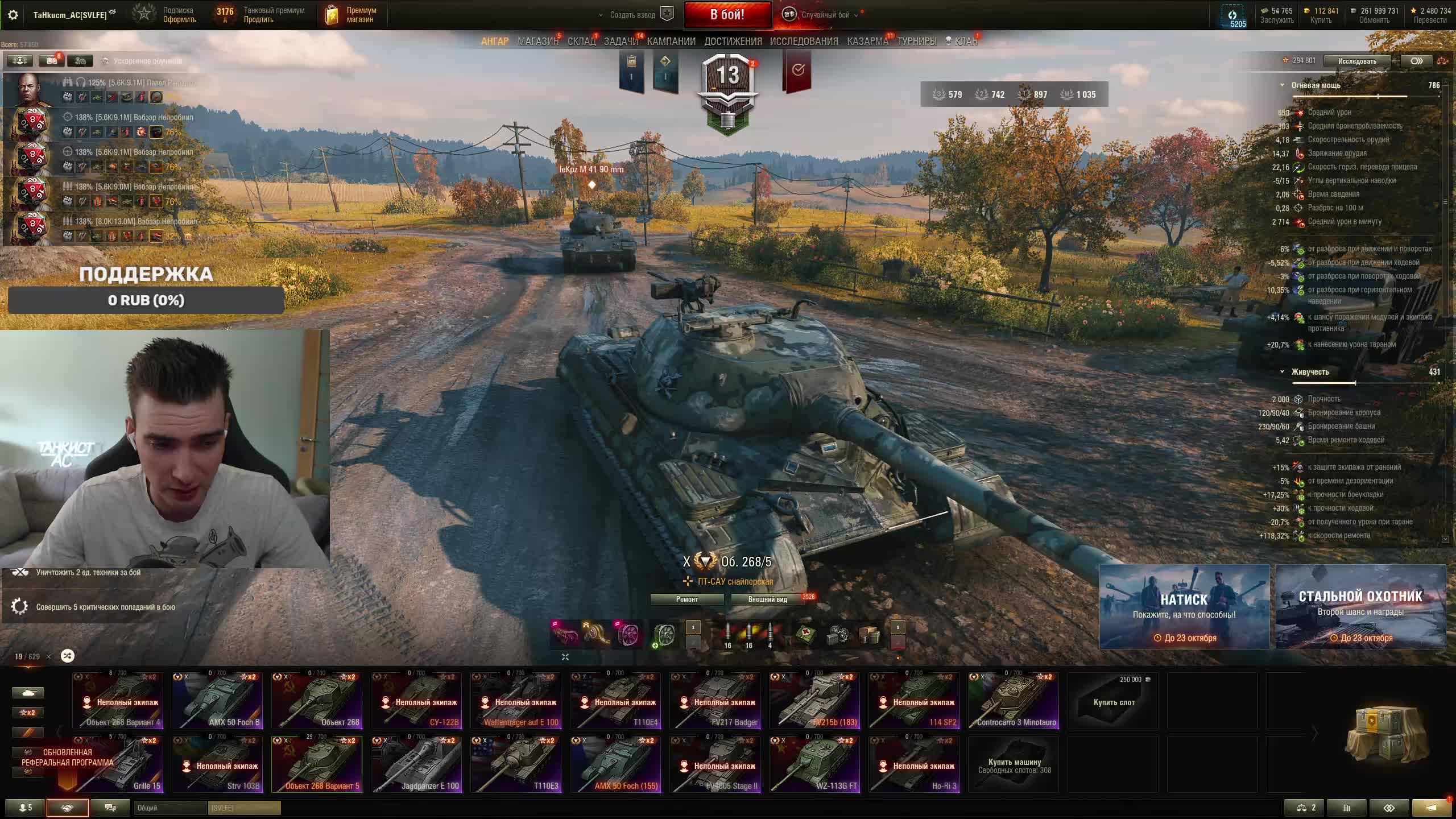 Поддержать стримера http://www.donationalerts.ru/r/tahkucm_ac Сбер без комиссии 2202 2062 2408 9735 напишите в чате, чтобы проверил Telegram https://t.me/TaHkucm_AC Канал Ютуб https://www.youtube.com/c/TaHkucmAC Канал VK Play Live https://vkplay.live/tahkucm Канал Бусти https://boosty.to/tahkucm Канал на трово https://trovo.live/TaHkucm_AC Канал Дзен https://dzen.ru/id/62355e95d406852937d33526 Группа Вконтакте https://vk.com/tahkucm_ac Оборудование и модернизации на все танки https://docs.google.com/spreadsheets/d/16koQOrtKQKQrAy2Pgfm6GBeG8bA1tJP_7Vm78knwUXA/edit#gid=422106233 Настройки игры в скринах https://dzen.ru/a/YmFvHhJ9yi3rZO5M Моды со скринами установки https://vk.com/topic-136212047_47639792 По поводу рекламы писать в личку https://vk.com/v_xarlamow Всем привет! Меня зовут Виктор, мой ник TaHkucm_AC. На моем канале стрим мира танков каждый день с 8 или 9 по мск. Так же иногда стримлю вечером в произвольное время, чтобы не пропустить подпишитесь на оповещения в телеге или вк (ссылки выше). Играю в танки с декабря 2011 года, а стримить начал в начале 2017 года. Во время стримов общаюсь с чатом, помогаю советами по игре, объясняю тактику. Средняя статистика 65% побед и 4-5к вн8. Фан кланы SLPFR - Командиры marmyn и artlay - из требований только то, чтобы вы часто играли в танки. Укреп 10 уровня. Участвуют в ивентах на ГК, как минимум чтобы собрать пропуск на аукцион. L-DS - Командир DarkSpawn13. Укреп 10 уровня, плюхи по кд SVLFE - Командир Shadowlions. Требуется Team Speak (программа связи) для взводов и клановых покатушек. Участвуют в ивентах на ГК, как минимум чтобы собрать пропуск на аукцион. укреп 10 уровня