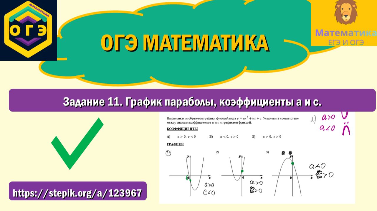 Продолжение на степике: https://stepik.org/a/123967. Вся теория и разбор задач, которые точно встретятся на ОГЭ по математике! ТГ-канал: t.me/ege_oge_maths. В видео разбираем Задание 11, решаем типовую задачу: Укажите соответствие между знаками коэффициентов а и с и графиками функций.