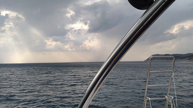 Проходим мимо парусной яхты по левому борту на Чёрном море в Большом Утрише