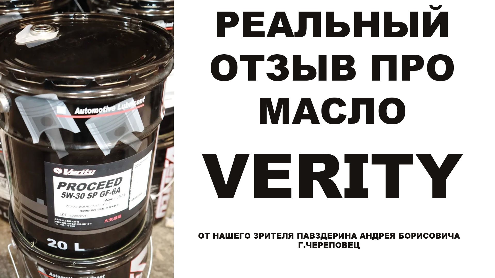 Реальный отзыв про моторное масло VERITY от нашего зрителя Павздерина Андрея г. Череповец.