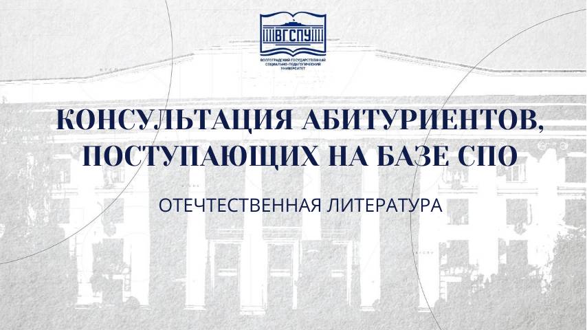 ОТЕЧЕСТВЕННАЯ ЛИТЕРАТУРА - КОНСУЛЬТАЦИЯ ДЛЯ АБИТУРИЕНТОВ, ПОСТУПАЮЩИХ НА БАЗЕ СПО