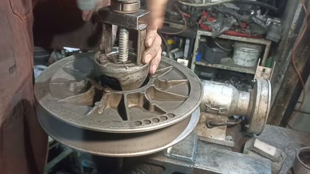 Сборка ведомого вариатора снегохода.