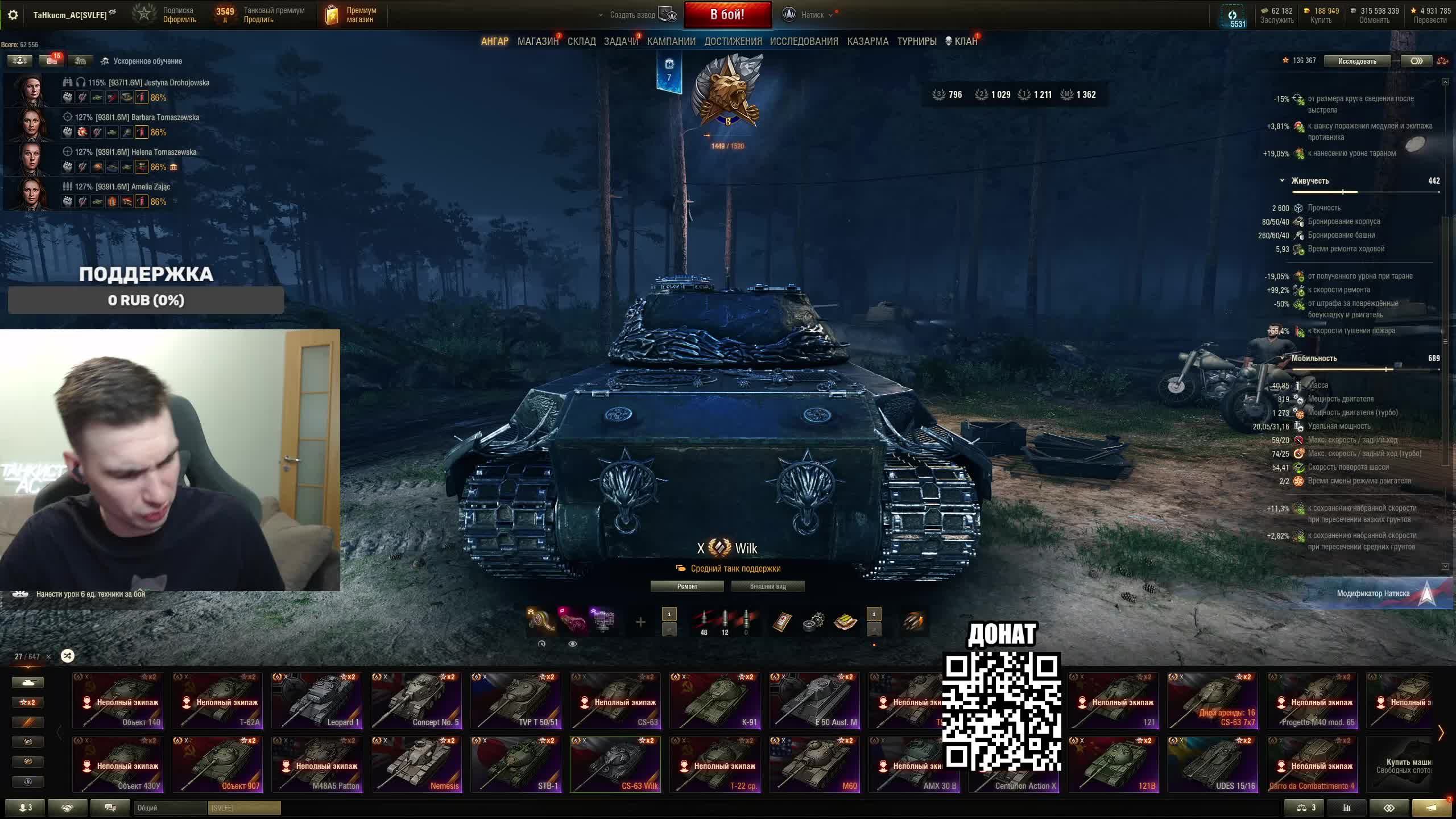 Поддержать стримера http://www.donationalerts.ru/r/tahkucm_ac Сбер без комиссии 2202 2062 2408 9735 напишите в чате, чтобы проверил Telegram https://t.me/TaHkucm_AC Канал Ютуб https://www.youtube.com/c/TaHkucmAC Канал VK Play Live https://vkplay.live/tahkucm Канал Бусти https://boosty.to/tahkucm Канал на трово https://trovo.live/TaHkucm_AC Канал Дзен https://dzen.ru/id/62355e95d406852937d33526 Группа Вконтакте https://vk.com/tahkucm_ac Оборудование и модернизации на все танки https://docs.google.com/spreadsheets/d/16koQOrtKQKQrAy2Pgfm6GBeG8bA1tJP_7Vm78knwUXA/edit#gid=422106233 Настройки игры в скринах https://dzen.ru/a/YmFvHhJ9yi3rZO5M Моды со скринами установки https://vk.com/topic-136212047_47639792 По поводу рекламы писать в личку https://vk.com/v_xarlamow Всем привет! Меня зовут Виктор, мой ник TaHkucm_AC. На моем канале стрим мира танков каждый день с 8 или 9 по мск. Так же иногда стримлю вечером в произвольное время, чтобы не пропустить подпишитесь на оповещения в телеге или вк (ссылки выше). Играю в танки с декабря 2011 года, а стримить начал в начале 2017 года. Во время стримов общаюсь с чатом, помогаю советами по игре, объясняю тактику. Средняя статистика 65% побед и 4-5к вн8. Стример сертифицированный тренер FYSM (свежая синтезированная методология йоги) Вы можете заниматься через бота, который будет выдавать вам рандомные тренировки от 800 рублей в месяц https://fysm.co/harlamov Индивидуальные тренировки по созвону первая 300 рублей, далее 500 рублей Групповые тренировки по созвону от 200 рублей Фан кланы SLPFR - Командиры marmyn и artlay - из требований только то, чтобы вы часто играли в танки. Укреп 10 уровня. Участвуют в ивентах на ГК, как минимум чтобы собрать пропуск на аукцион. L-DS - Командир DarkSpawn13. Укреп 10 уровня, плюхи по кд SVLFE - Командир Shadowlions. Требуется Team Speak (программа связи) для взводов и клановых покатушек. Участвуют в ивентах на ГК, как минимум чтобы собрать пропуск на аукцион. укреп 10 уровня