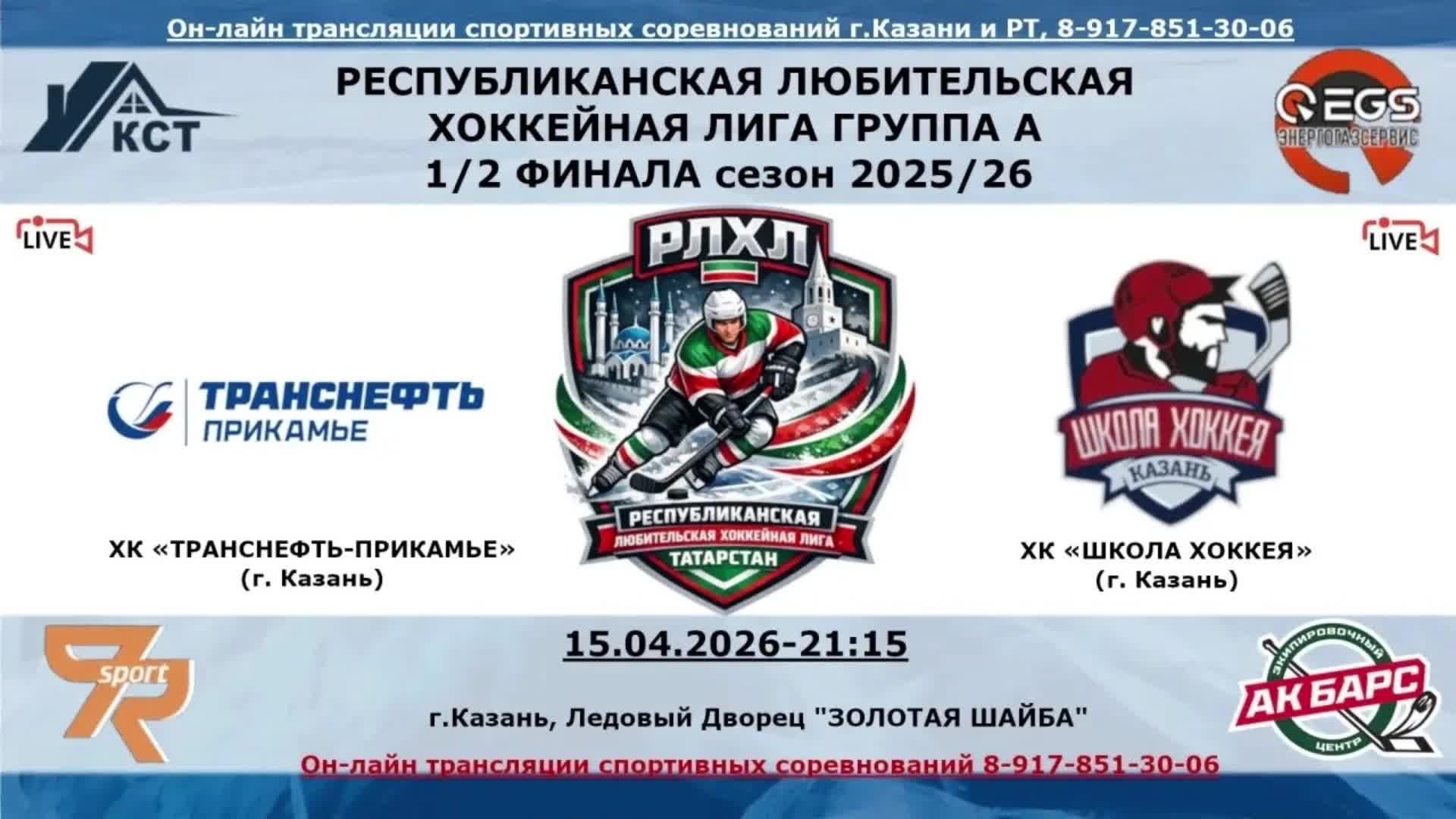ХК «ТРАНСНЕФТЬ-ПРИКАМЬЕ» (г. Казань) - ХК «ШКОЛА ХОККЕЯ» (г. Казань)