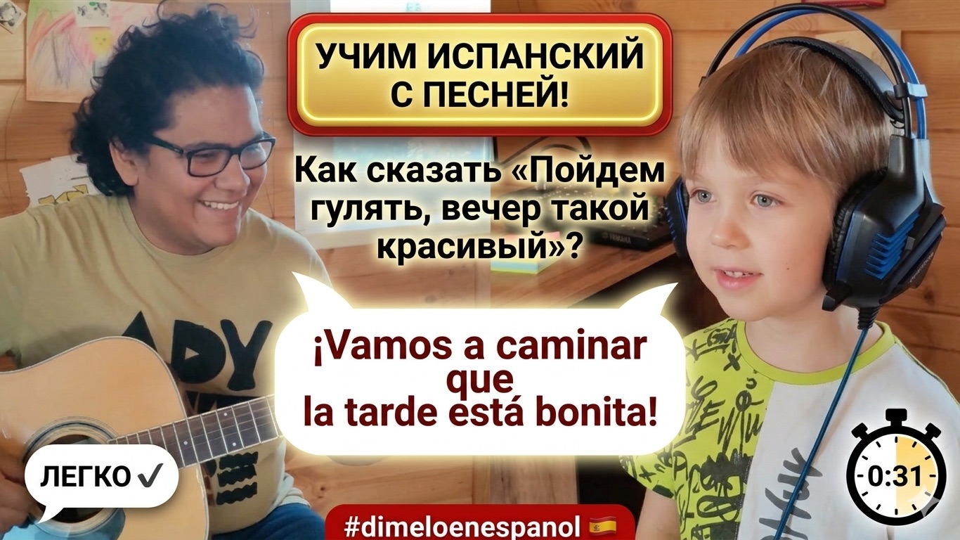 Добро пожаловать в новый выпуск #dimeloenespanol! Сегодня мы показываем, как музыка может стать мощным инструментом в изучении иностранного языка. Вместе с моим юным другом мы исполняем классическую песенку «Papi dedo». Это упражнение идеально подходит для начинающих, так как оно тренирует базовые вопросы и ответы в игровой форме. В этом ролике: Разбор текста песни «Papi dedo». Живое исполнение под гитару. Советы, как музыка помогает преодолеть языковой барьер у детей. Присоединяйтесь к нашему музыкальному уроку! Не забудьте поставить лайк и подписаться на канал для новых полезных видео. #dimeloenespanol #УрокИспанского #ИспанскийСНуля #ИспанскийЯзык #РазговорныйИспанский #Песни #Образование #УчимЯзыки