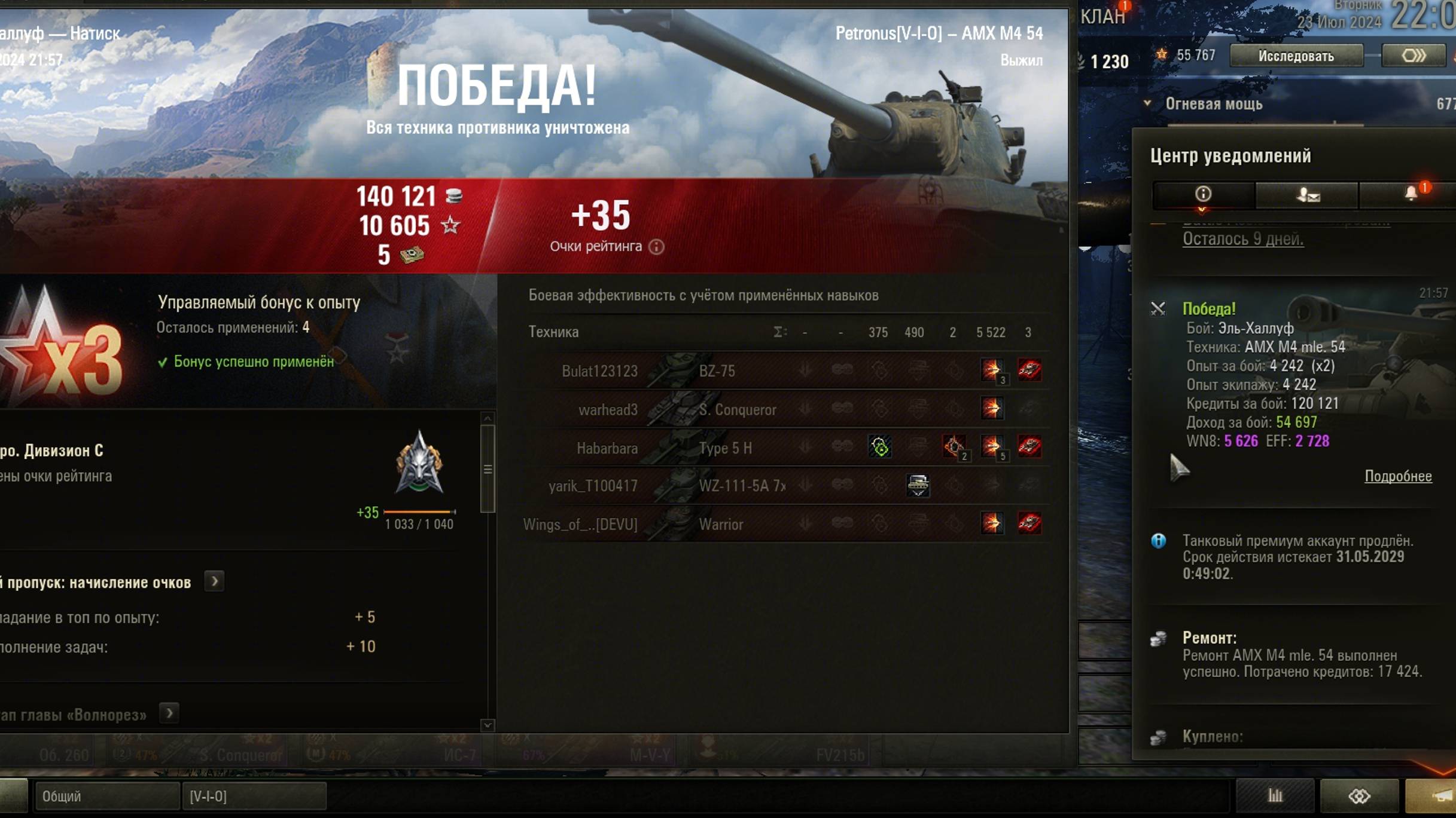 2024.07.23 Натиск, AMX M4 mle. 54, Эль-Халлуф, 5522 урон, 3 фраг