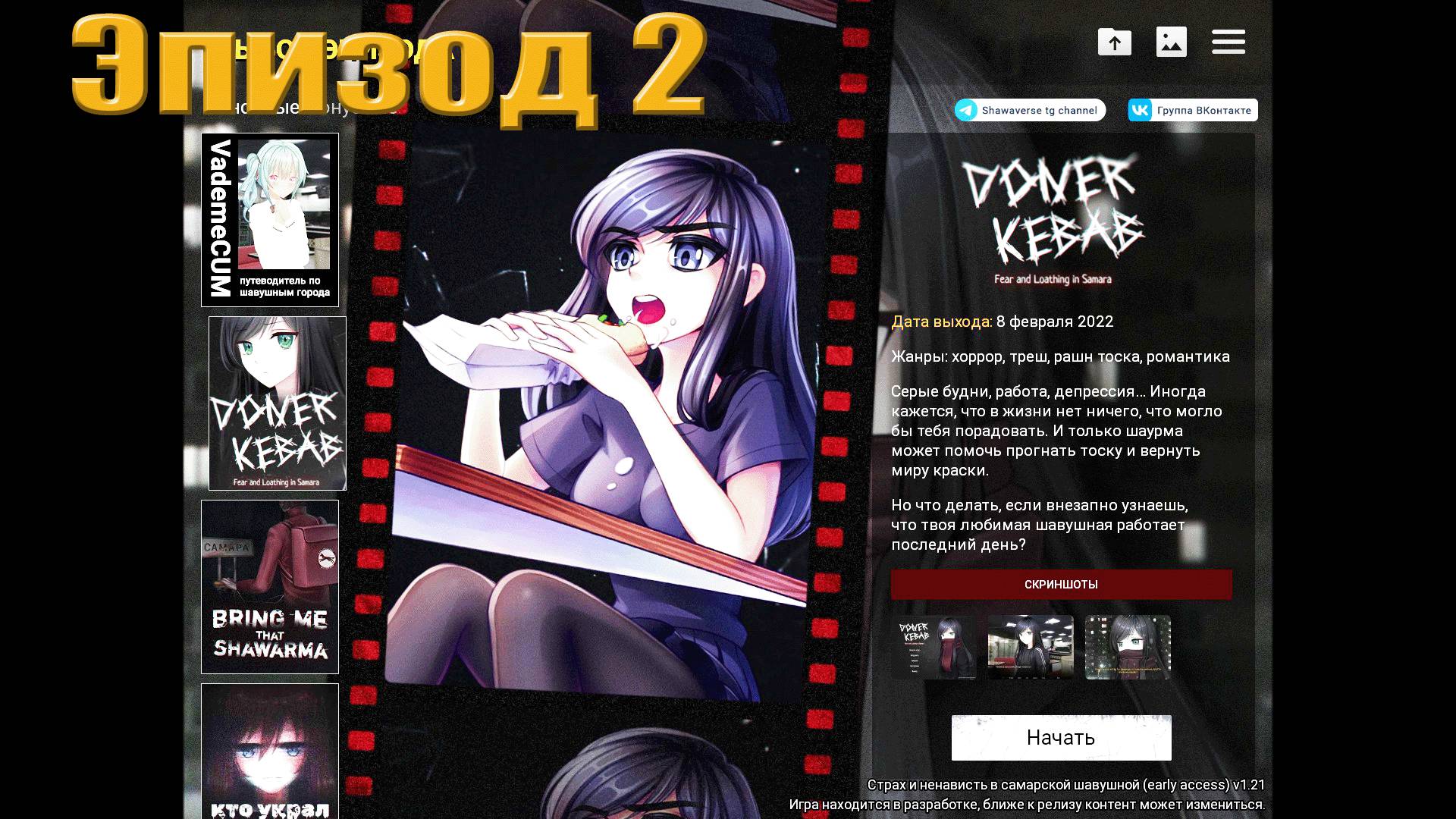 Всем привет! Визуальная новелла про шаурму, состоящая из нескольких эпизодов. В этой визуальной новелле вы узнаете: насколько опасен может быть белый соус, как выглядит шаурма в человеческом обличье, чьего ора стоит бояться на ночных улицах Самары, и какие тайны скрывают кухни элитных шаурмешных. Залетай на канал, подписывайся и жми большой палец вверх под видео. Также оставляй комментарии, чтобы я знал, как улучшить контент. Канал только развивается. Больше видео на моем канале в ютуб, ссылка в описании профиля Мой канал на Ютубе https://www.youtube.com/@Pr0nto-ft4kl Мой канал на Твитч https://www.twitch.tv/seregamih88/about Мой канал Дзен https://dzen.ru/id/6494352dff266a429061699a #pronto #gaming #игры #пронто #игра #шаурма #визуальная_новелла #прохождение #соус #шаверма #videogames #инди