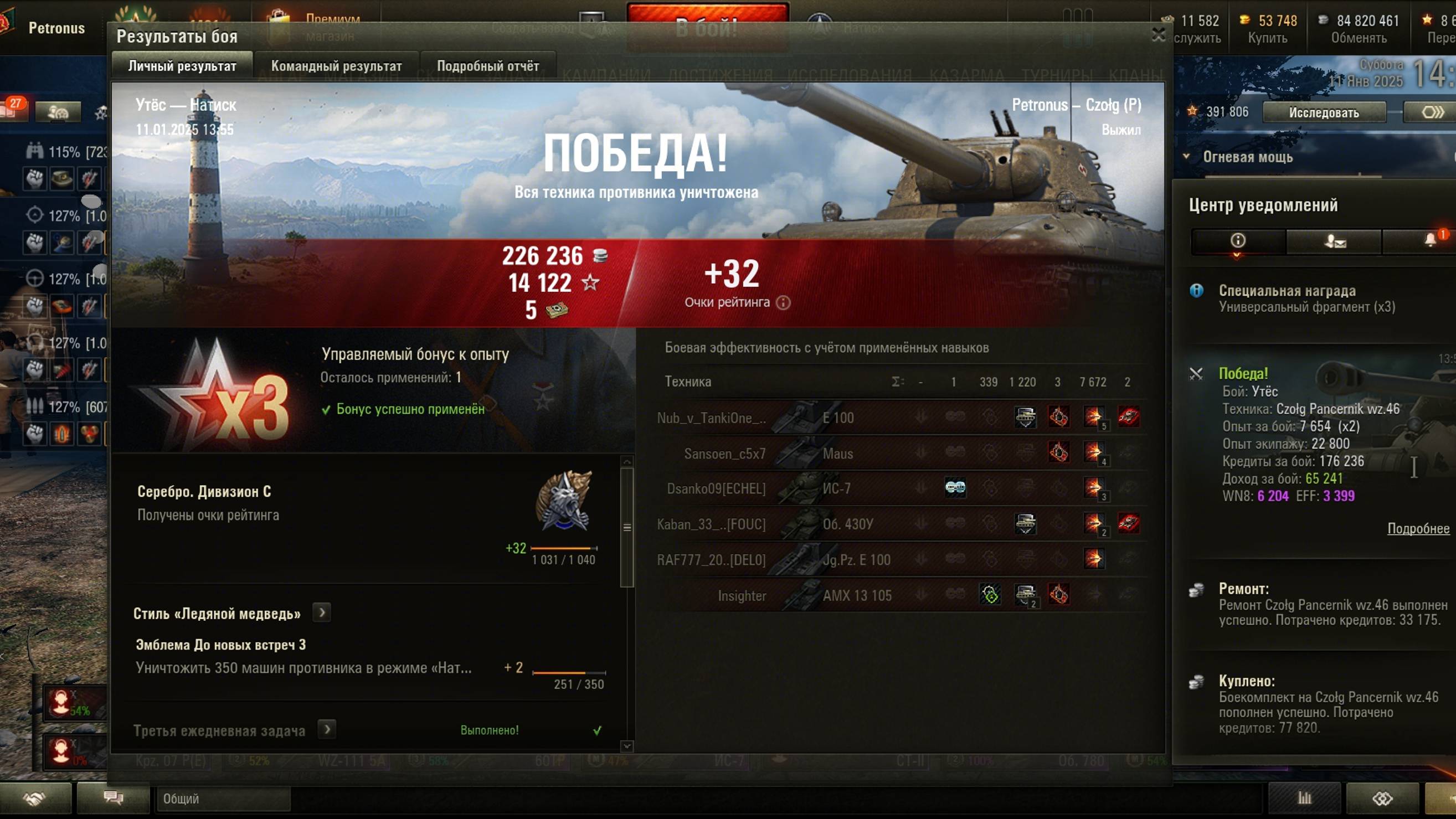 2025.01.11 Натиск, Czołg Pancernik wz.46, Утёс, 7672 урон, 2 фраг