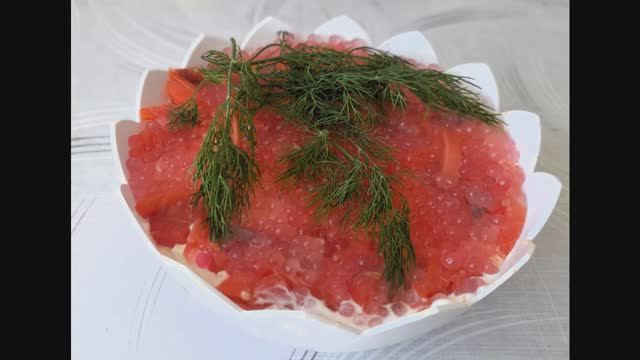 Салат с красной икрой — это всегда роскошно, вкусно и полезно ; Незаменимые жирные кислоты красной икры предотвращают болезни сердца, слепоту, депрессию, а также играют важную роль в здоровом развитии мозга!