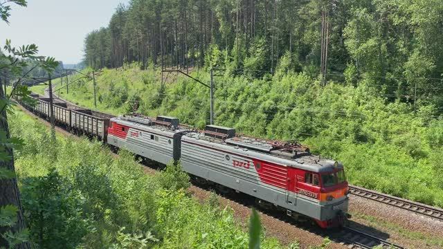 Электровоз ВЛ10-1370 с грузовым поездом, перегон Капитолово - Токсово, Ленинградская область (июнь 2021г.)