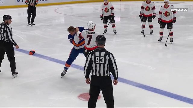 Brady Tkachuk And Anders Lee Drop The Gloves For Opening-Faceoff Fight