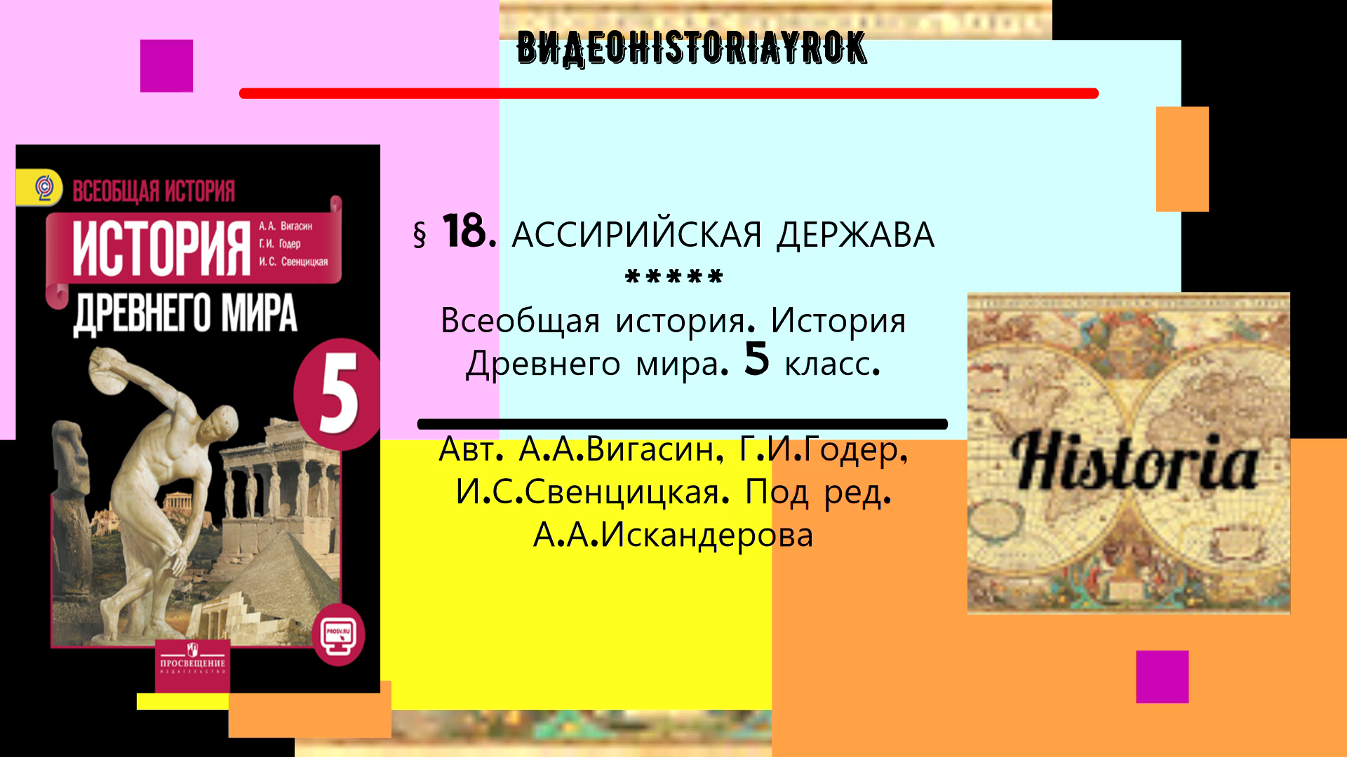 В образно-иллюстративной форме в пределах §18. "Ассирийская держава" . учебника "Всеобщая история. История Древнего мира" . Авт.А.А.Вигасин, Г.И.Годер, И.С.Свенцицкая под ред.А.А.Искандерова ( Последнее издание) ФГОС. Издательство "ПРОСВЕЩЕНИЕ" рассказывается по плану: 1. Освоение железа. 2. Ассирийское войско. 3. Завоевания ассирийских царей. 4. Царский дворец. 5.Библиотека глиняных книг. Видео станет отличным пособием для проведения урока, самостоятельного изучения и закрепления темы.
