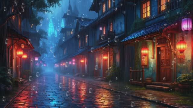 ⛈️Расслабляющие звуки дождя и грома в городке для отдыха и сна, учебы и медитации