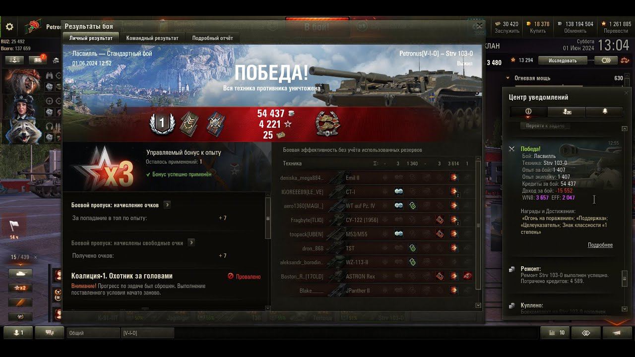 2024 06 01 Strv 103 0, Ласвилль, 3614 урон, 1340 ассист, 1 фраг