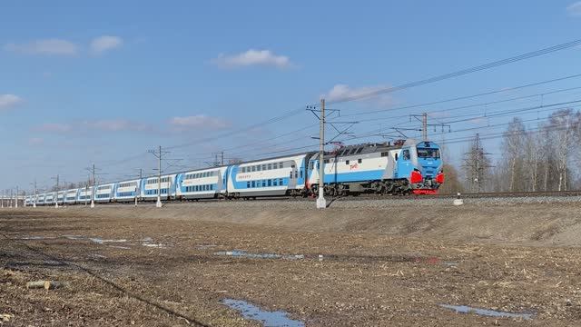 Электровоз ЭП2К-502 с поездом №743 Санкт-Петербург - Москва "Аврора", перегон Колпино - Саблино, Ленинградская область (март 2025г.)