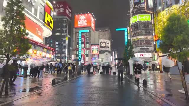 Прогулка дождливой ночью по Синдзюку, Токио, Япония ( 1 апреля 2025 г. )