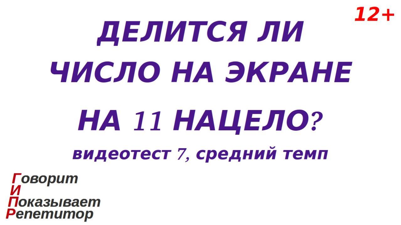 Категория 12+. Этот видеоролик - основа эпизода игры в репетитора и ученика и позволяет тренироваться применять признак делимости на 11 нацело (без остатка). Правила игры в этом эпизоде такие: после запуска видео репетитор-компьютер (планшет, смартфон, телевизор) показывает (отображает) на экране число, а вопрос репетитора следующий: "Делится ли изображенное число на 11 нацело?". Игрок-ученик должен дать ответ (вслух или про себя). Через некоторое время на экране появляется правильный ответ, с которым нужно сравнить свой собственный. Затем показывается следующее число и т. д. Цель игрока-ученика - дать как можно больше правильных ответов. Если все ответы верные, это считается абсолютной победой ученика в этом эпизоде игры. Я рекомендую это видео в первую очередь детям, осваивающим тему "Признаки делимости нацело". Таким образом, ролик представляет собой игровой видеотест, имеющий общие черты с программой-тренажером, дающей онлайн примеры и ответы на них. Показ числа длится 5,0 секунды, а ответа - 1,5 секунды. Это, на мой взгляд, средний темп. Если тема игры Вам интересна и Вы добились успехов, рекомендую попробовать свои силы при помощи других видеотестов на эту же тему в среднем или даже в быстром темпе, а если Вам кажется, что вопросы задаются очень часто и Вы не успеваете продумывать ответы, то попробуйте потренировать навыки при помощи видеотестов на эту тему в медленном темпе. Если же тема не интересна, то не забывайте - это игра и она не должна идти по принуждению. При создании ролика мной преследовалась следующая цель: дать ненавязчивый игровой материал, помогающий повторять пройденную тему детям, с которыми я, как репетитор, индивидуально вживую проводил занятия по арифметике и алгебре. При выборе примеров, времени показа примера, количества примеров в одном ролике, продолжительности ролика, используемых цветов и других параметров в первую очередь я полагался на результаты собственных наблюдений, полученных в процессе указанных занятий. А именно, конкретизирую, перечисленные и другие параметры выбраны так, чтобы на протяжении одного эпизода игры (времени показа одного видео) игрок-ученик мог давать больше половины правильных ответов и при этом не уставал. При таком подходе к созданию ролика главное, чего я добился в своей практике общения с указанными выше детьми, состоит в следующем: каждый игровой эпизод не вызывал отторжения, а наоборот, настраивал на продолжение игры, а, значит, на очередную тренировку вычислительных навыков без постороннего принуждения. Поскольку предлагаемая игра подразумевает развитие навыков, применяемых в образовательном процессе ребенка, ролик отнесён к категории "Образование". Но я подчеркиваю - ролик не создавался как образовательный материал, соответствующий государственным стандартам в сфере образования, методическим указаниям и рекомендациям для образовательного процесса, т. е. образовательным материалом он не является. Также, по моему мнению и отзывам некоторых моих подписчиков, результат моей работы оказался полностью или частично подходящим ответом на такие популярные поисковые запросы, как: - признак делимости на 11; - признак делимости чисел на одиннадцать; - математика признаки делимости; - упражнения на признаки делимости; - признаки делимости натуральных чисел. Я выкладываю этот видео