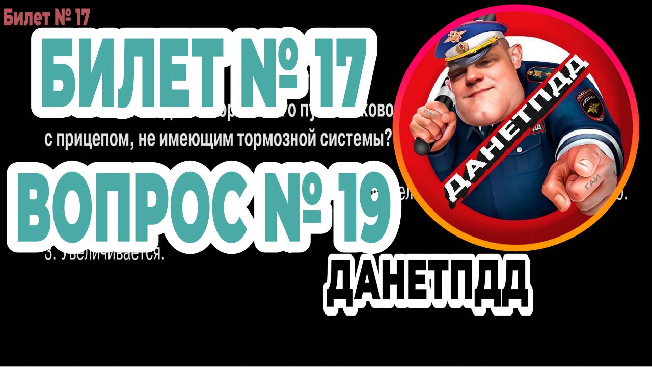 Билет № 17. Вопрос № 19. Как изменяется длина тормозного пути легкового автомобиля при движении с прицепом, не имеющим тормозной системы? Решаем вопрос № 19 ПДД онлайн экзаменационного билета ГАИ № 17. ___________________________________________ 🔥 Вы можете поддержать канал по ссылке: https://clck.ru/3FeMWH ___________________________________________ ✅ ДАНЕТПДД в социальных сетях: YouTube: https://youtube.com/@danetpdd Rutube: https://rutube.ru/channel/51400104/ VK Видео: https://vkvideo.ru/@danetpdd Телеграм: https://t.me/danetpdd Сайт: https://danetpdd.ru