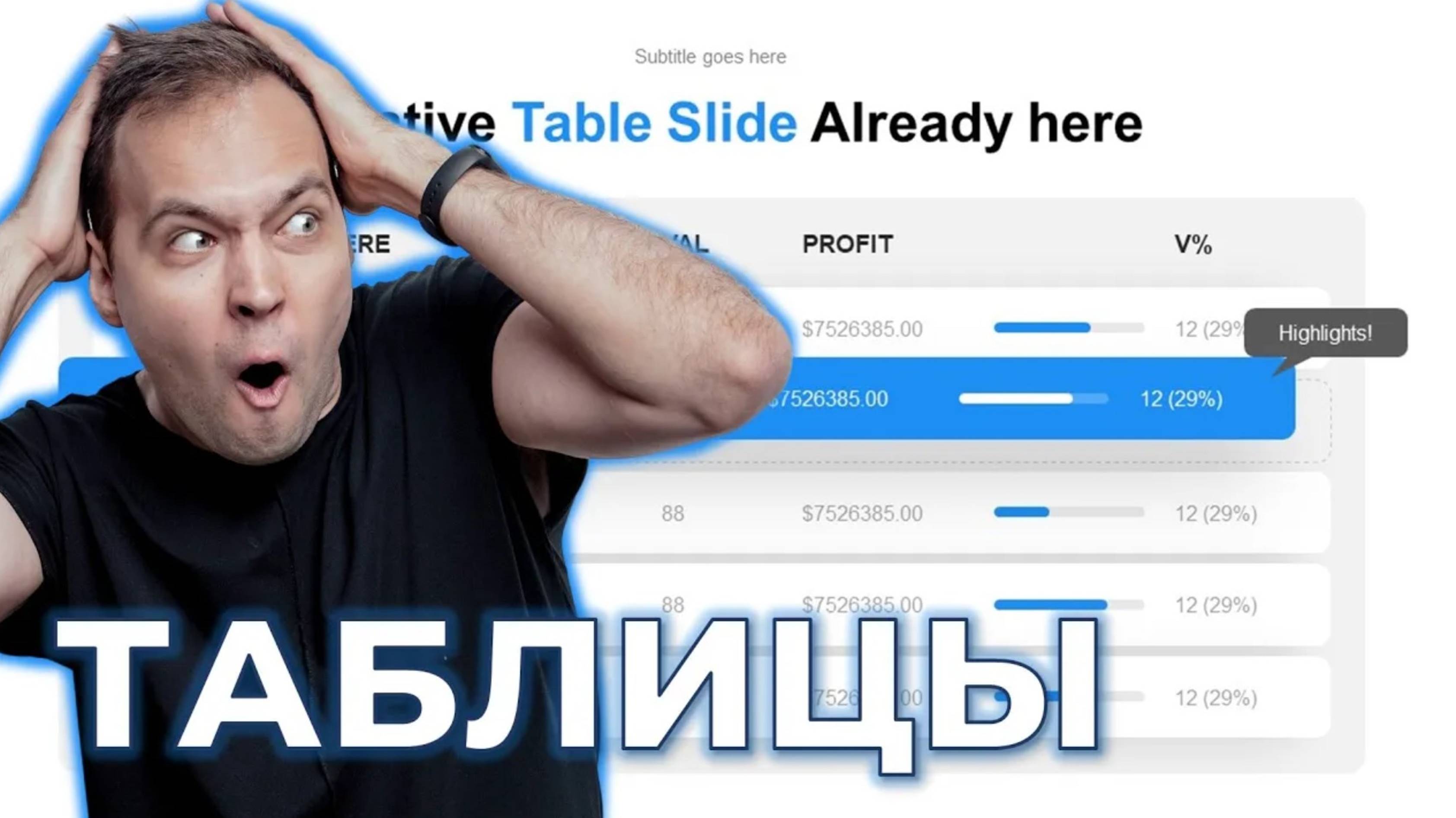 ✅ Онлайн-курс по PowerPoint http://kimvoronin.com/ Скачать примеры таблиц нашего сообщества https://docs.google.com/presentation/d/11ZTPrVxJ7nABKxaJTiVj6ybewNRgG1ka/edit?usp=sharing&ouid=106409360718175489758&rtpof=true&sd=true Файл из видео https://docs.google.com/presentation/d/1q-LeXvEXRUnYOgeZLUPlKcGuMeO_xkr7/edit?usp=sharing&ouid=106409360718175489758&rtpof=true&sd=true Полезный контент про создание презентаций здесь: Instagram ► https://www.instagram.com/kim_voronin/ Telegram ► https://teleg.run/kimvoronin Привет, меня зовут Ким Воронин! На этом канале я учу делать красивые и понятные презентации в PowerPoint, а также зарабатывать на презентациях. Из моих видео-уроков вы узнаете, как делать инфографику, диаграммы, анимацию и креативные слайды для создания продающих презентаций! Буду рад вашим комментариям и вопросам. Если видео оказалось полезным — ставь лайк! #powerpoint #презентация #урок
