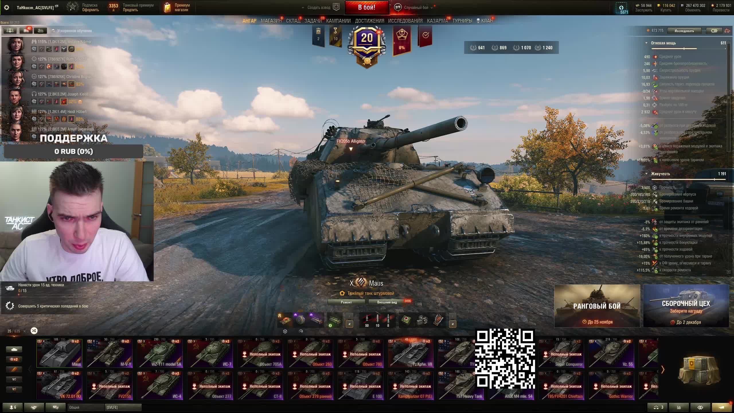 Поддержать стримера http://www.donationalerts.ru/r/tahkucm_ac Сбер без комиссии 2202 2062 2408 9735 напишите в чате, чтобы проверил Telegram https://t.me/TaHkucm_AC Канал Ютуб https://www.youtube.com/c/TaHkucmAC Канал VK Play Live https://vkplay.live/tahkucm Канал Бусти https://boosty.to/tahkucm Канал на трово https://trovo.live/TaHkucm_AC Канал Дзен https://dzen.ru/id/62355e95d406852937d33526 Группа Вконтакте https://vk.com/tahkucm_ac Оборудование и модернизации на все танки https://docs.google.com/spreadsheets/d/16koQOrtKQKQrAy2Pgfm6GBeG8bA1tJP_7Vm78knwUXA/edit#gid=422106233 Настройки игры в скринах https://dzen.ru/a/YmFvHhJ9yi3rZO5M Моды со скринами установки https://vk.com/topic-136212047_47639792 По поводу рекламы писать в личку https://vk.com/v_xarlamow Всем привет! Меня зовут Виктор, мой ник TaHkucm_AC. На моем канале стрим мира танков каждый день с 8 или 9 по мск. Так же иногда стримлю вечером в произвольное время, чтобы не пропустить подпишитесь на оповещения в телеге или вк (ссылки выше). Играю в танки с декабря 2011 года, а стримить начал в начале 2017 года. Во время стримов общаюсь с чатом, помогаю советами по игре, объясняю тактику. Средняя статистика 65% побед и 4-5к вн8. Фан кланы SLPFR - Командиры marmyn и artlay - из требований только то, чтобы вы часто играли в танки. Укреп 10 уровня. Участвуют в ивентах на ГК, как минимум чтобы собрать пропуск на аукцион. L-DS - Командир DarkSpawn13. Укреп 10 уровня, плюхи по кд SVLFE - Командир Shadowlions. Требуется Team Speak (программа связи) для взводов и клановых покатушек. Участвуют в ивентах на ГК, как минимум чтобы собрать пропуск на аукцион. укреп 10 уровня
