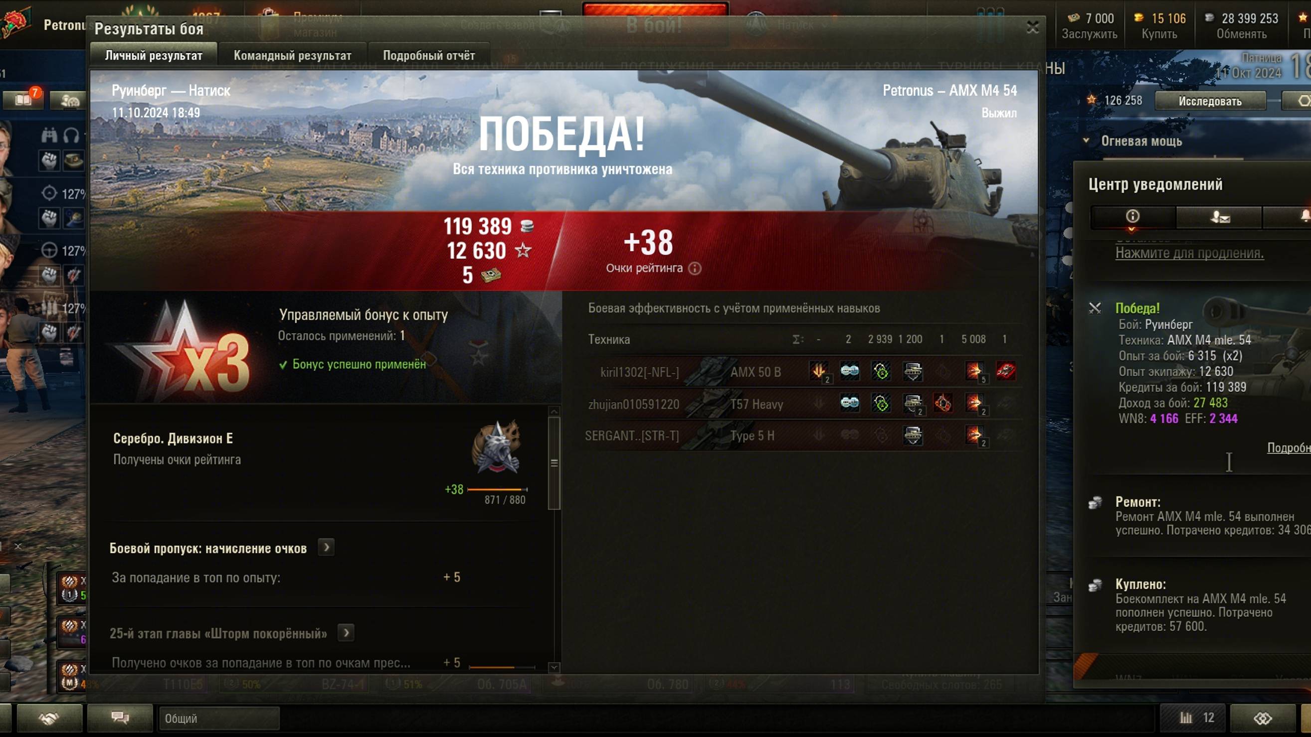2024.10.11 Натиск, AMX M4 mle. 54, Руинберг, 5008 урон, 1 фраг