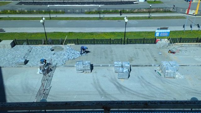 Под окном работали монтажники. Поставил камеру на час и проследил сколько брусчатки им удастся уложить. 00:00 - процесс укладки 03:53 - результат