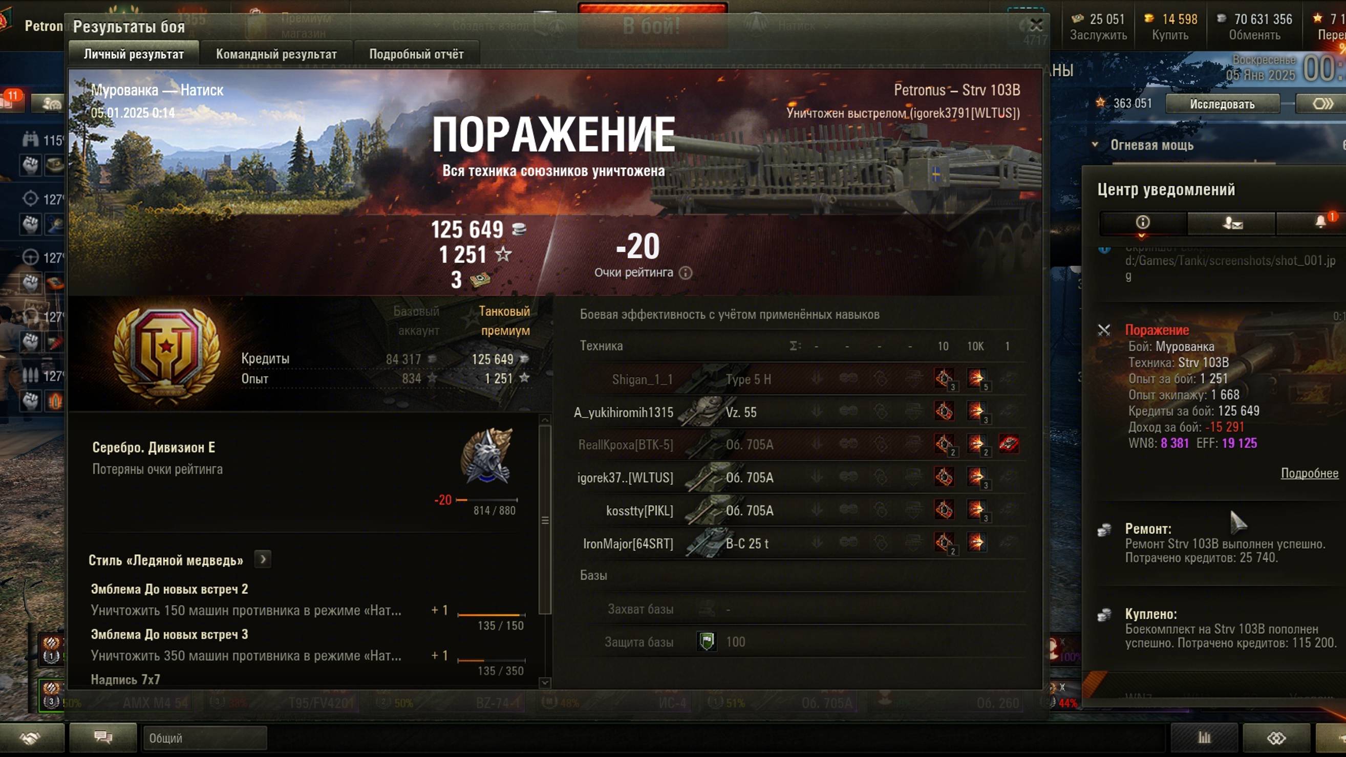 Поражение Бой: Мурованка, Техника: Натиск, Strv 103B, Мурованка, 10816 урон, 1 фраг Опыт за бой: 1251 , Опыт экипажу: 1668, Кредиты за бой: 125649, Доход за бой: -15291, WN8: 8381, EFF: 19125, --------------------- Здесь мои покатушки по игре "МИР ТАНКОВ", Не судите строго, играю урывками после работы :) Стримы и видео на каналах: https://www.youtube.com/@andreypetrovpetronus/videos https://rutube.ru/channel/23544308 https://vk.com/video/@id1071693 https://trovo.live/anpetr33 https://www.twitch.tv/anpetr33 https://nuum.ru/channel/anpetr33 https://plvideo.ru/channel/@Petronus Всем добра :) --------------------- Поддержать стримера: https://www.donationalerts.com/r/anpetr33 ---------------------