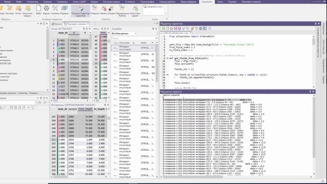 5.2 Проверяем работоспособность скрипта для нахождения длин пропущенных интервалов. Micromine 2024