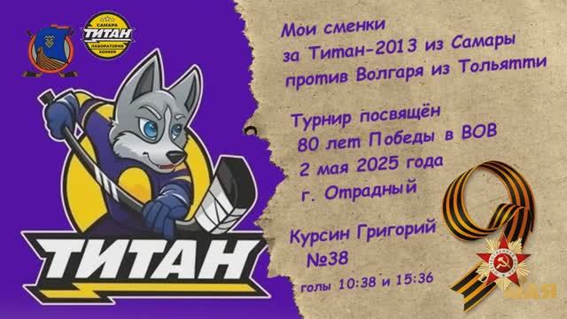 Волгарь (Тольятти) - Титан (Самара) - победа Волгаря 7-6 по буллитам. Турнир по хоккею среди команд 2013 г.р. посвящён 80 лет Победы в ВОВ. 2 мая 2025 года, г. Отрадный. КУРСИН Григорий №38 Играй в хоккей и будет все окей! t.me@meteorA37