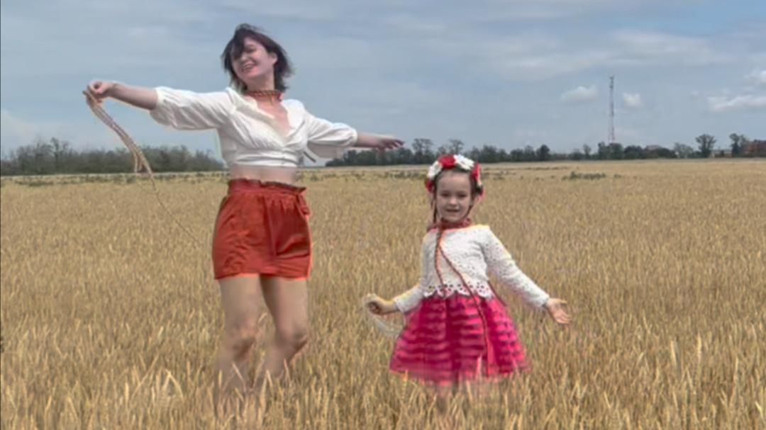 х. Чумбур-Коса, Азовский район, Ростовская область Арина и Маша поют песню Татьяны Куртуковой "Матушка-Земля" и танцуют в пшеничном поле 02.07.2025.