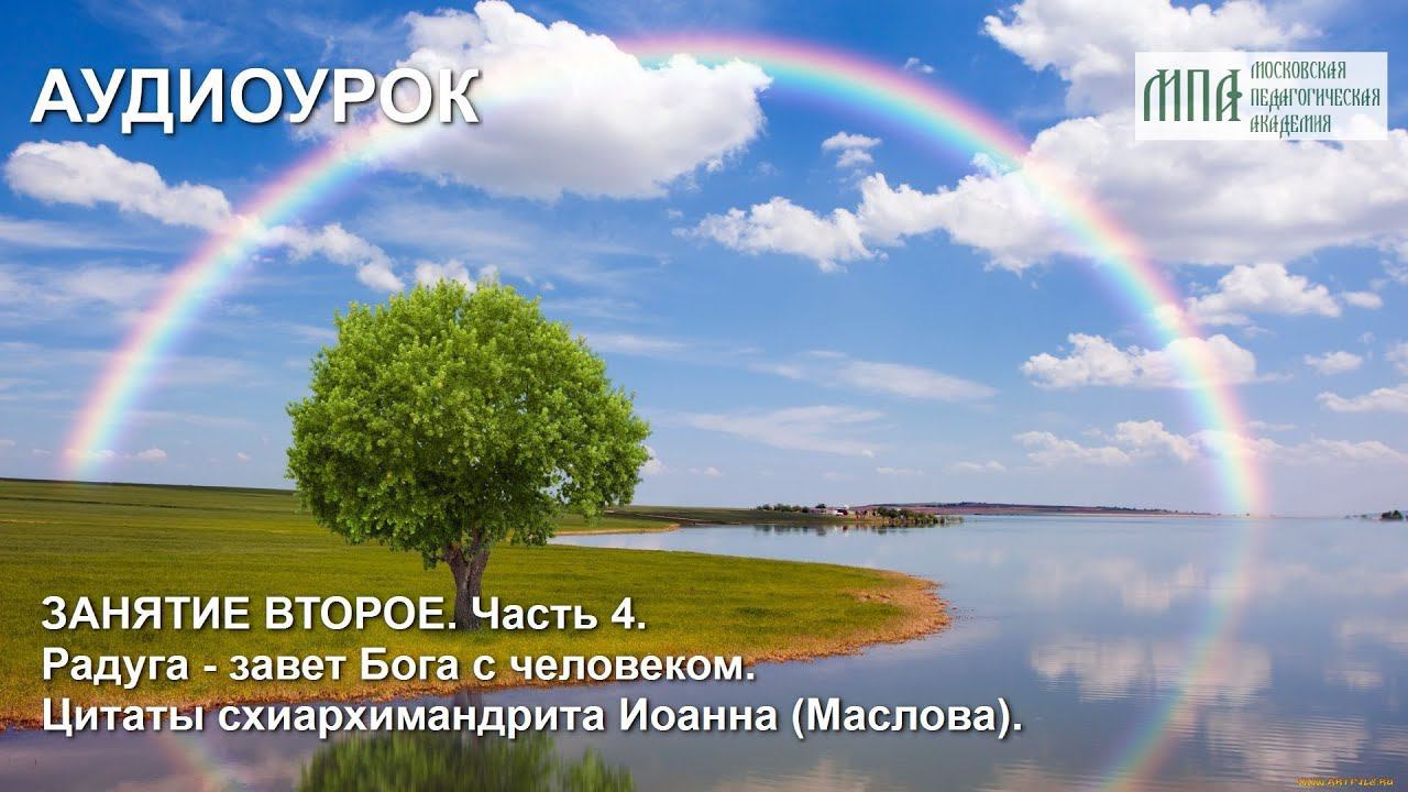ЗАНЯТИЕ ВТОРОЕ. Часть 4 Аудиоурок по материалам Хрестоматии по духовно-нравственному воспитанию. Под общей редакцией доктора педагогических наук Н.В. Маслова. Источник: https://моспедакадемия.рф/ Радуга - завет Бога с человеком. Цитируется по книге: Детская Библия М., 1990 Цитаты схиархимандрита Иоанна (Маслова)