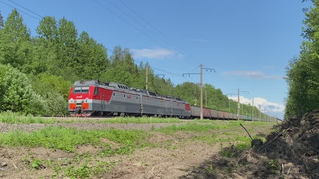 Электровоз 3ЭС4К-045 "Дончак", перегон Пупышево - Новый Быт, Ленинградская область (май 2023г.)