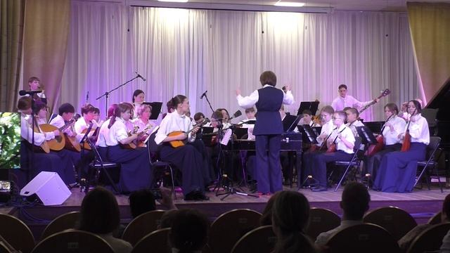РНП "За окном черёмуха колышется", обр. В.Городовской, солистка Яна Степанова(домра), В. Андреев, Вариации на тему РНП "Светит месяц".