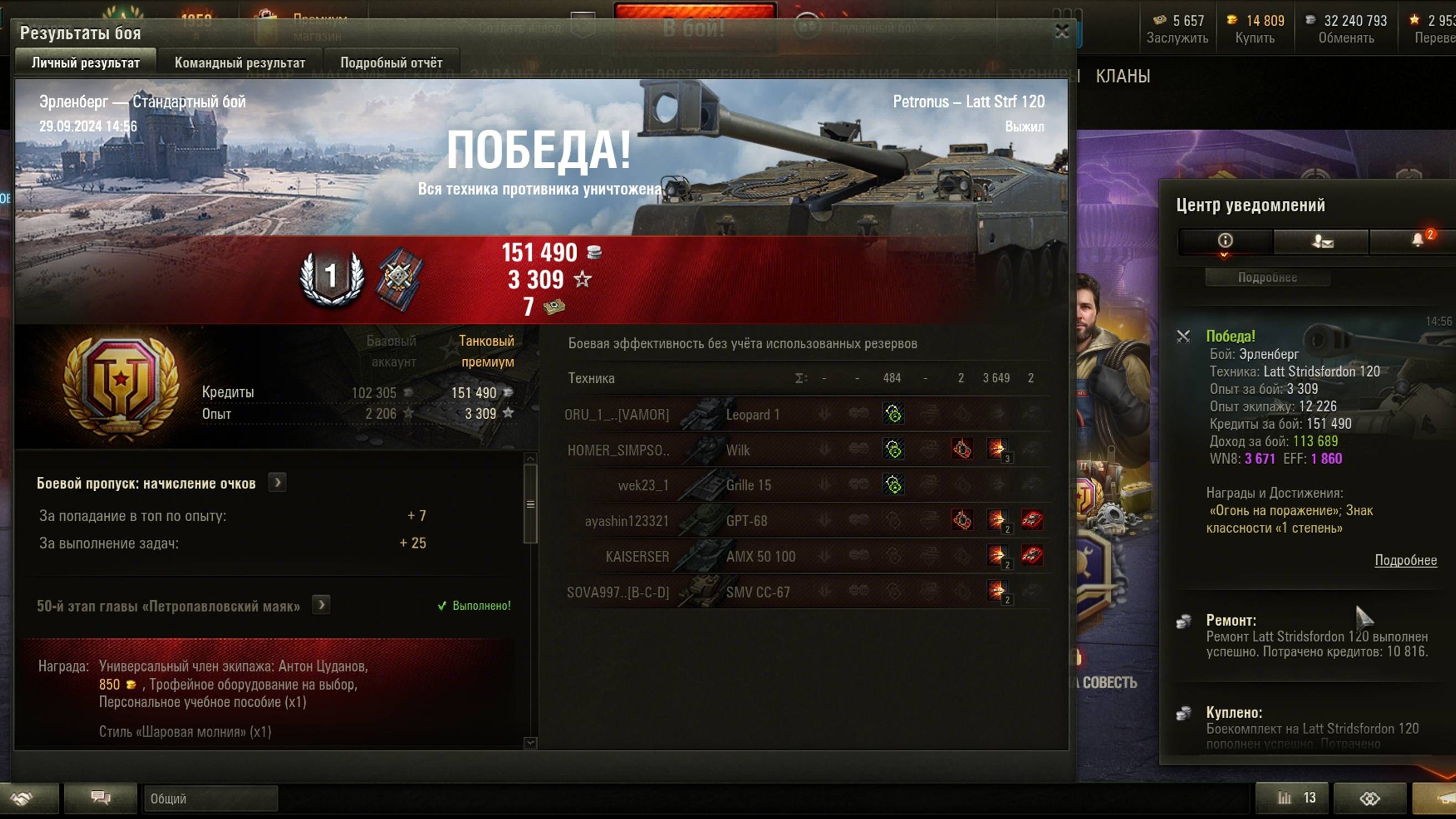 2024.09.29 Затащил слив Latt Stridsfordon 120, Эрленберг, 3649 урон, 2 фраг