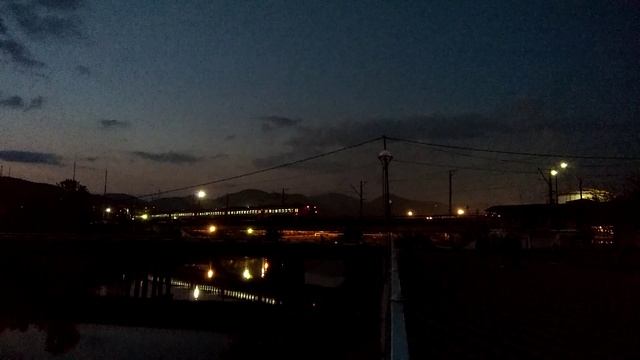 Апрельский вечер. В одном из кафе играет музыка. Электропоезд ЭД4М сообщением Сочи - Туапсе, прибывает на станцию Туапсе, Краснодарский край (апрель 2016г.)